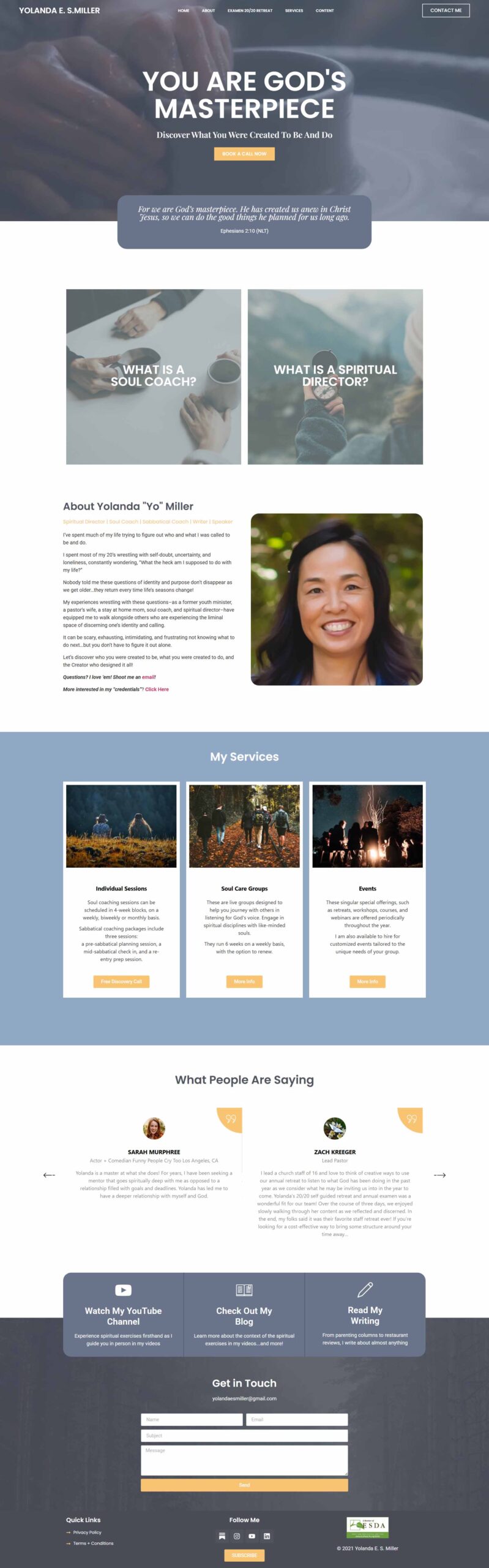 Yolanda E.S. Miller is a soul coach dedicated to helping individuals reconnect with their inner self, find clarity, and live with purpose. The goal of this project was to create a calm, inspiring, and emotionally engaging website that reflects her soulful approach while building trust and encouraging visitors to take the next step in their personal journey.