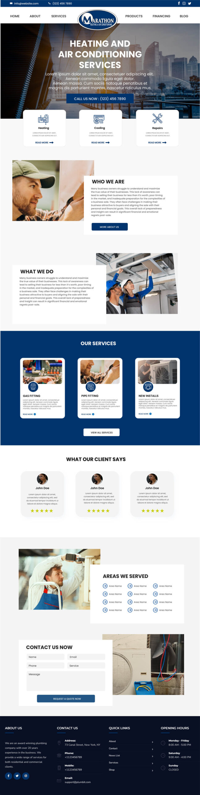 HVAC service pages (AC repair, heating repair, installation, maintenance)