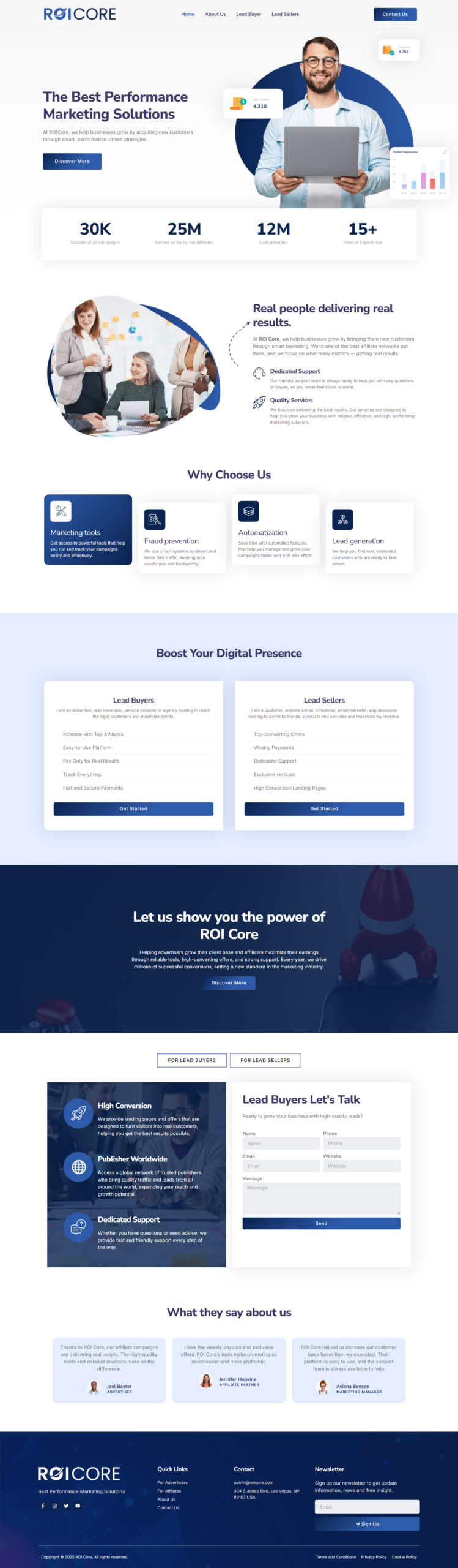 Designing Geeks partnered with ROI Core, a results-driven digital marketing agency, to design and develop high-performing websites that support lead generation, paid advertising, and long-term growth.