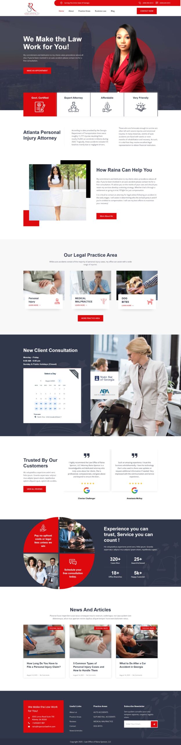 - Clear call-to-actions for free case evaluations